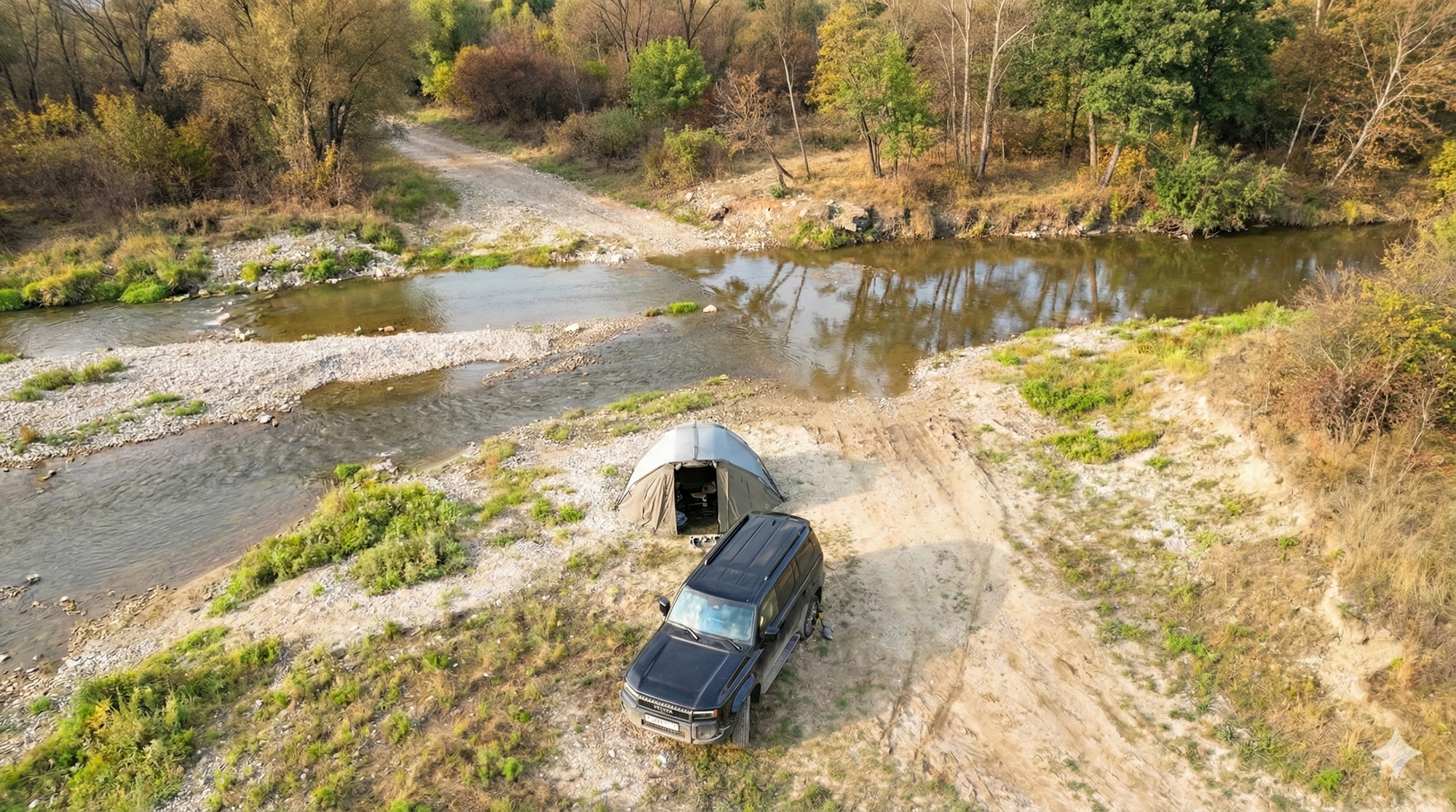 Večer jsme pak našli flek u řeky. Stan, oheň, něco na gril a koupání v ledové vodě. Minimum technologií, maximum klidu. A ten pocit, že tohle je přesně ten důvod, proč má smysl jezdit dál než na vyasfaltované parkoviště u hotelu.