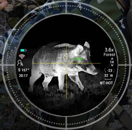 Výjimečný obraz poskytuje kulatý IPS LCD displej s rozlišením 800 × 800 px, který Vám zaručí zážitek jako s klasickým puškohledem a maximálním zorným polem. Tento displej poskytuje čistý obraz s bohatým kontrastem a má extra široké zorné pole pro ještě lepší přehled. Sledování je ještě přirozenější díky rychlé odezvě, jako když se díváte přes tradiční denní optiku.