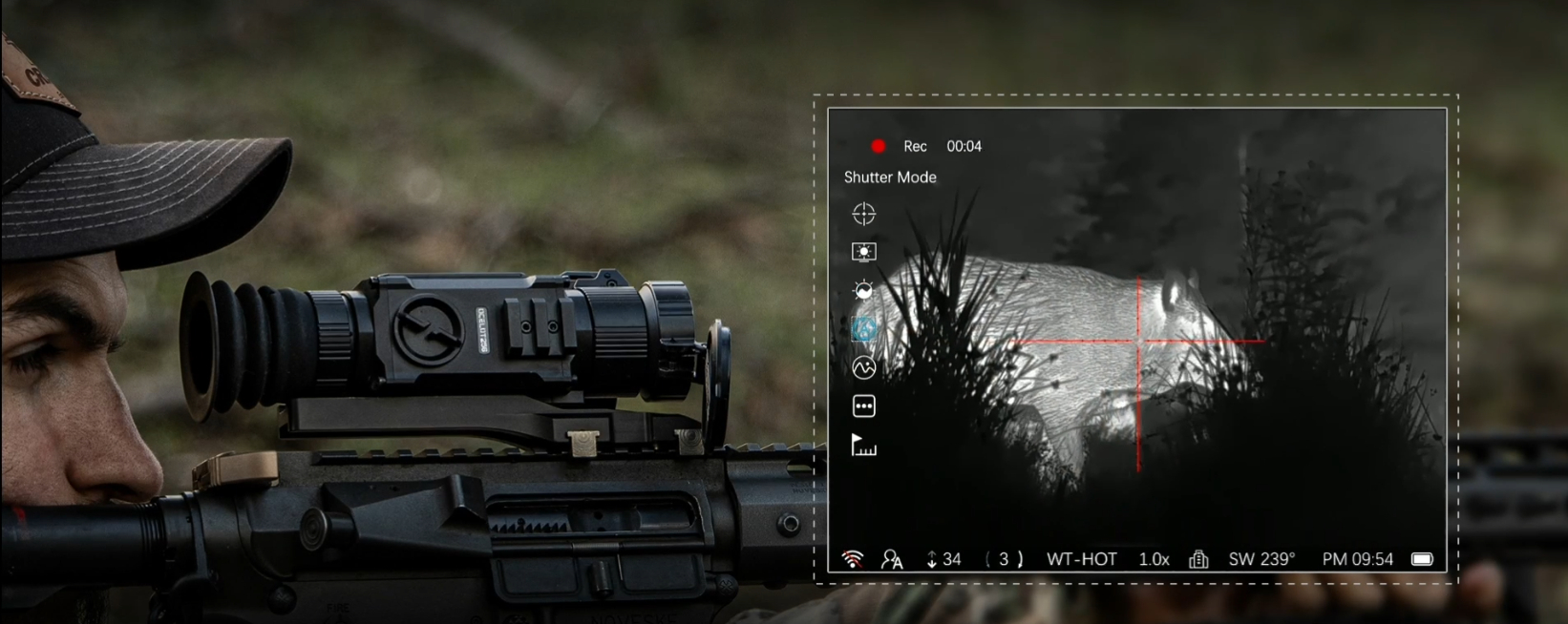 - Záznam aktivovaný zpětným rázem – zachyť každý okamžik: Ocelot 256 automaticky ukládá klíčové momenty díky funkci nahrávání aktivovaného zpětným rázem. Neustálá 20sekundová smyčka zajistí, že nic neunikne – po detekci výstřelu je video okamžitě uloženo do vestavěné 32GB paměti EMMC.