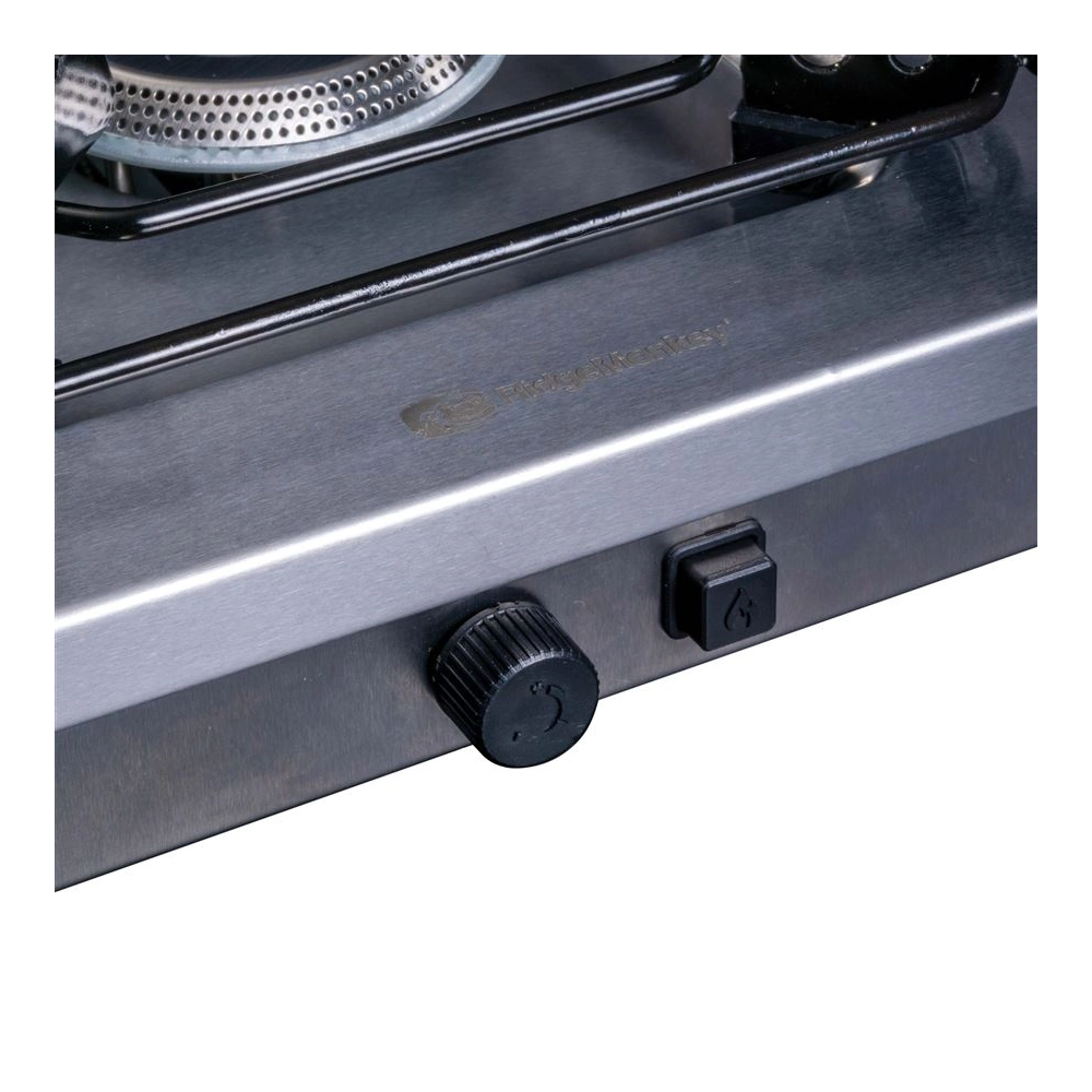 Přenosný plynový vařič RidgeMonkey Grilla CookStation Single Hob je kompaktní outdoorový vařič z nerezové oceli s výkonným hořákem 4,1 kW. Nabízí snadné zapalování, plynule nastavitelný plamen, skládací konstrukci a praktický boční stolek, díky čemuž je ideální pro rybaření, kempování i vaření v přírodě.