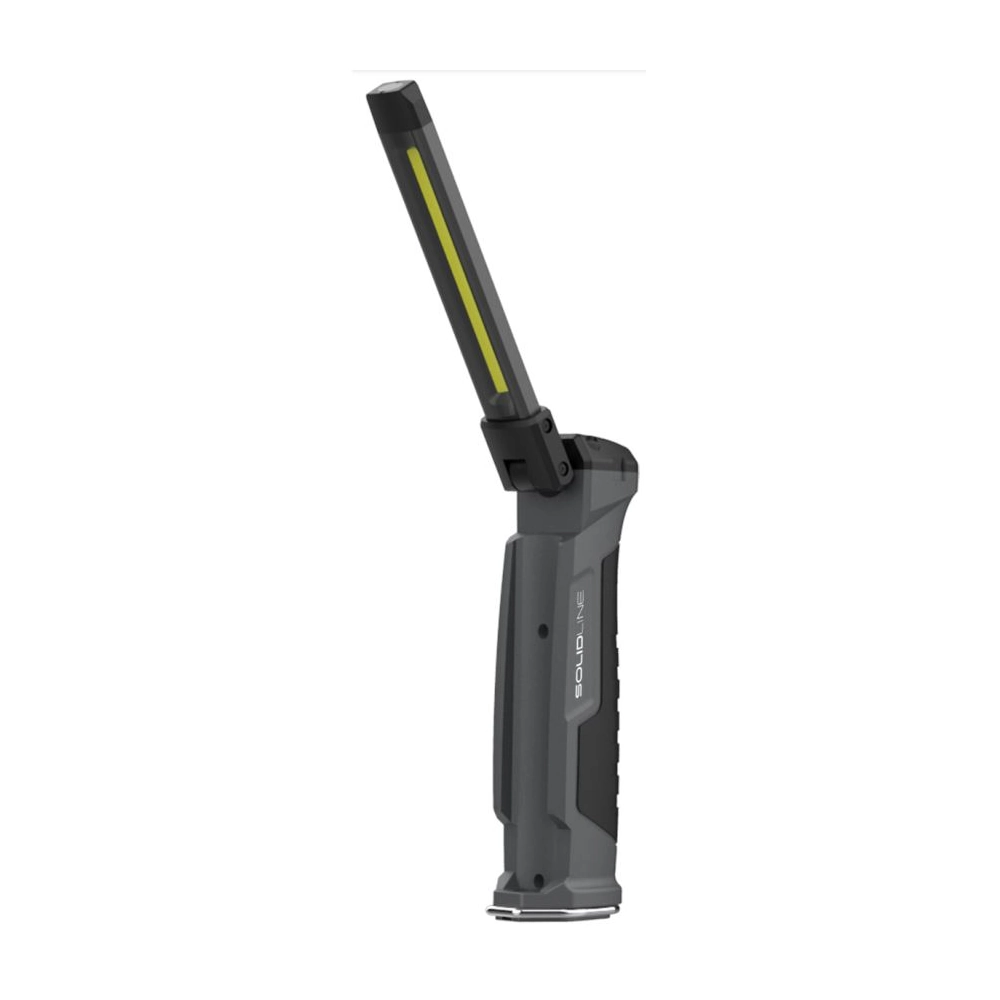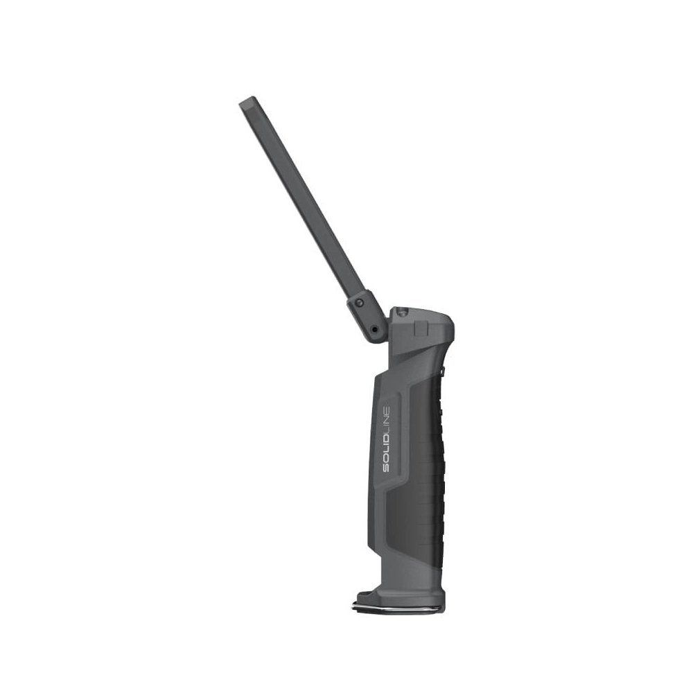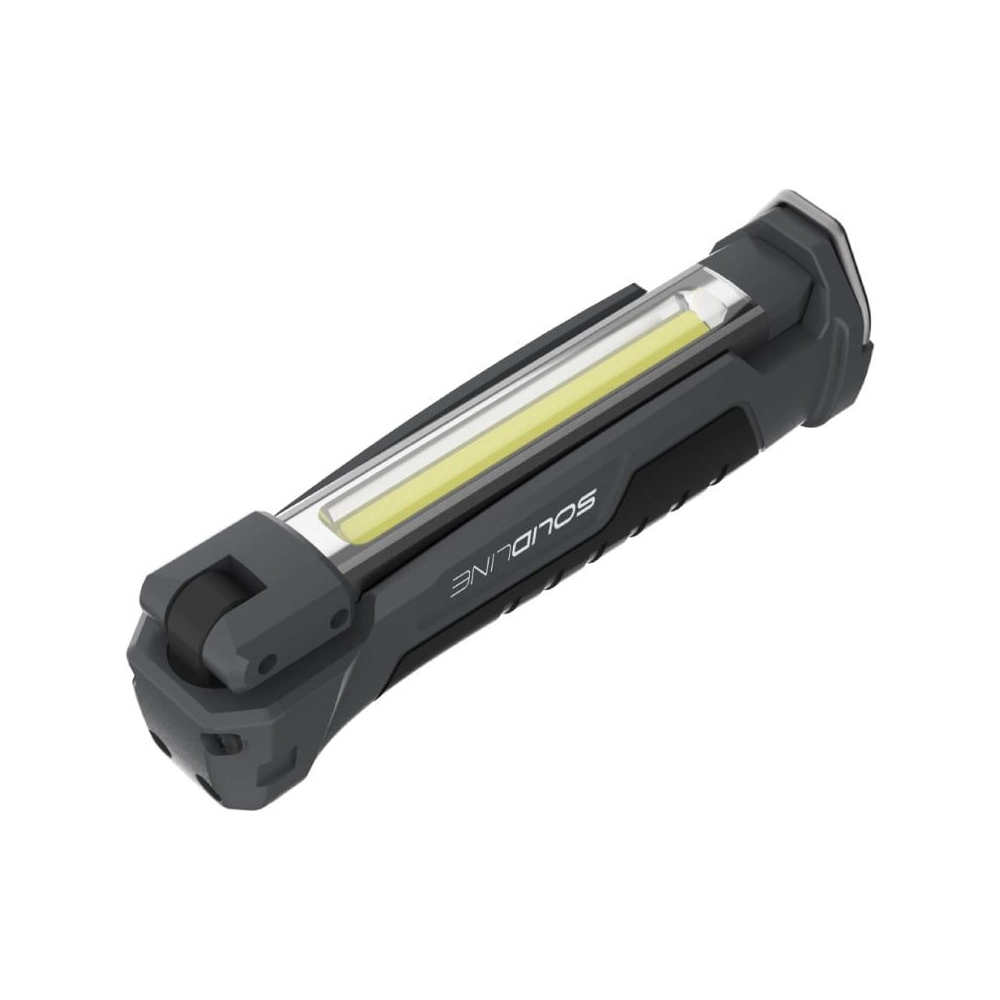 Kompaktní a univerzální pracovní světlo s širokým dosahem osvětlení do každého koutu vaší garáže nebo dílny. Díky hliníkové hlavě lampy lze složit i otočit o 180°, což umožňuje spolehlivé osvětlení i ve stísněných pracovních prostorách. Postranní COB záplavové LED poskytuje bílé nebo červené světlo v pěti různých režimech, zatímco dodatečná bodová LED poskytuje bodové bílé světlo ve dvou úrovních. Pro optimální uchopení je vybaveno pogumovanou rukojetí. Integrovaná baterie Solidline SW2R se snadno dobíjí pomocí micro-USB.